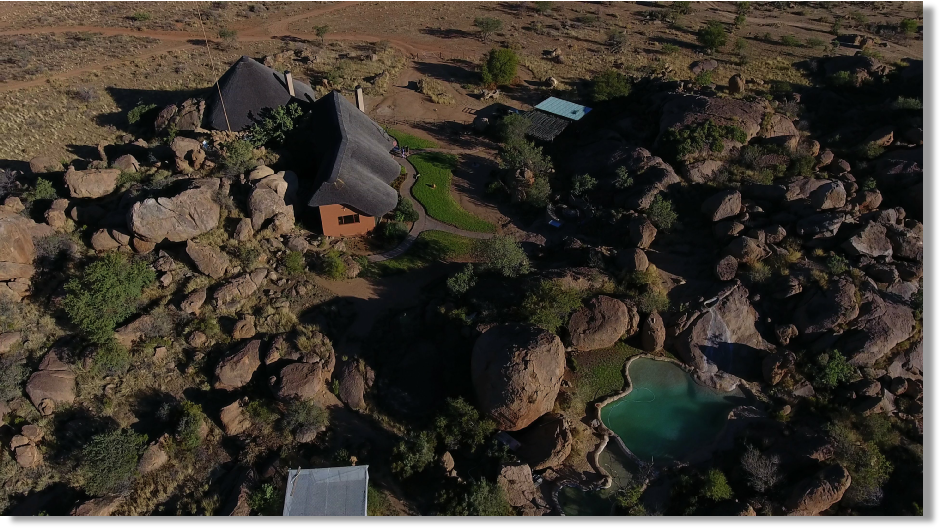 In die Felsen eingebettet mit Blick auf die Khomas-Hochland Berge.